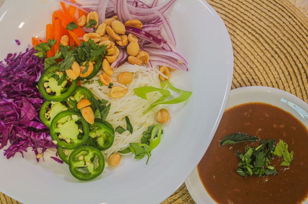 Quien dice que comer delicioso, no significa que pueda ser saludable, pues en esta ocasión te traemos una Ensalada de tallarines de arroz con aderezo de cacahuate. Una propuesta sabrosa y llena de mucho sabor con la que tus familiares o seres queridos quedarán fascinados.
