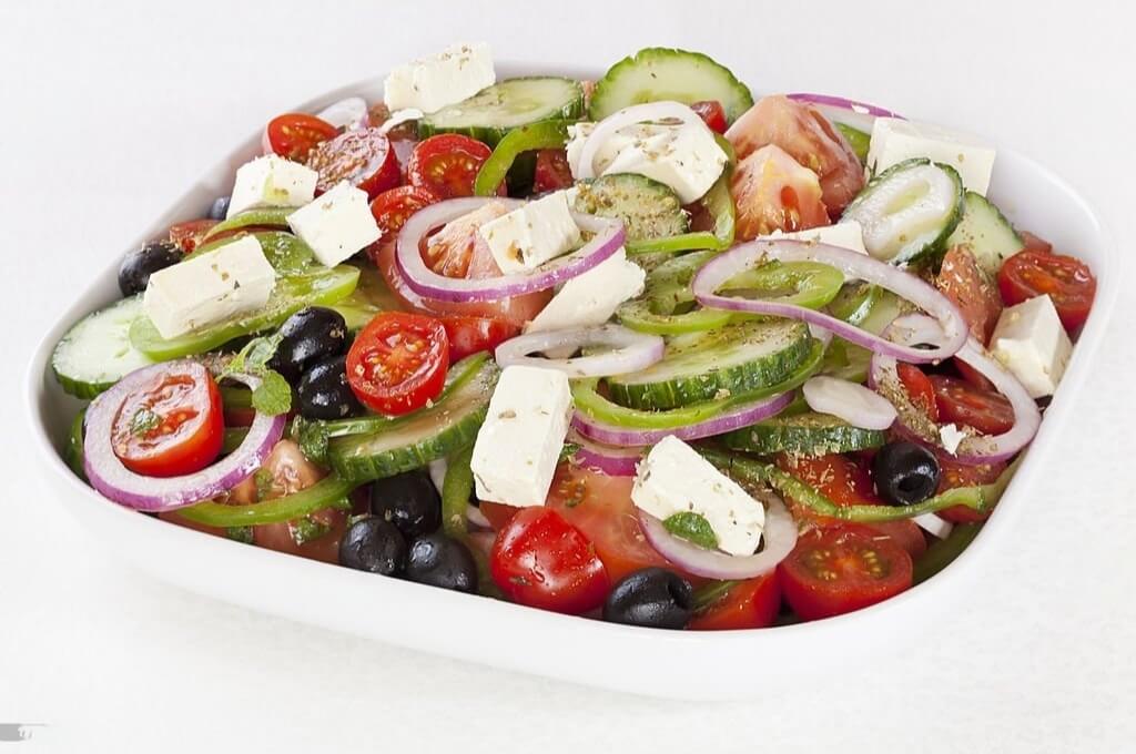 Esta receta es original de Grecia, como lo dice su nombre, ya que para elaborarla se utilizan ingredientes populares de este país como lo son el tomate cherry, pepino, pimiento y cebolla roja, queso feta y las aceitunas. Cabe destacar que existen diferentes formas de prepararla, integrando algunos ingredientes o quitando otros.
