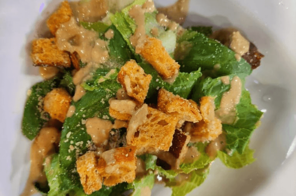 Los ingredientes destacados en esta receta son: lechuga romana, queso parmesano y pan rustico en cubos, entre otros ingredientes. Además, la lechuga romana le da un sabor muy original puesto que es un poco amarga. Sin embargo, es bien crujiente, por lo que es muy ideal para las ensaladas. Corta la lechuga con las manos para no alterar sabor.