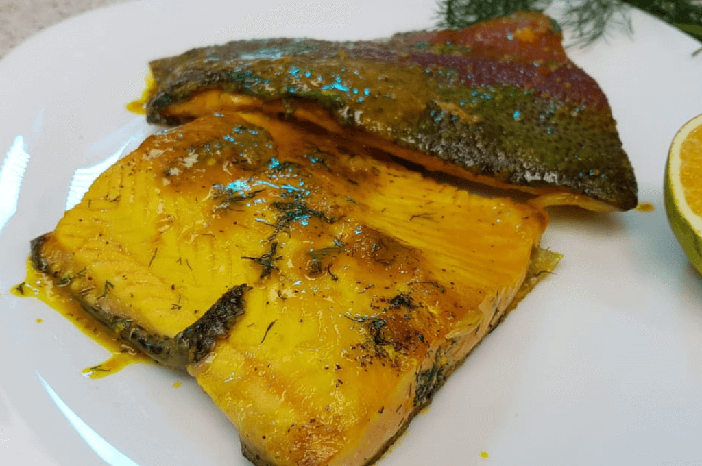 Delicioso salmón con naranja y cúrcuma.