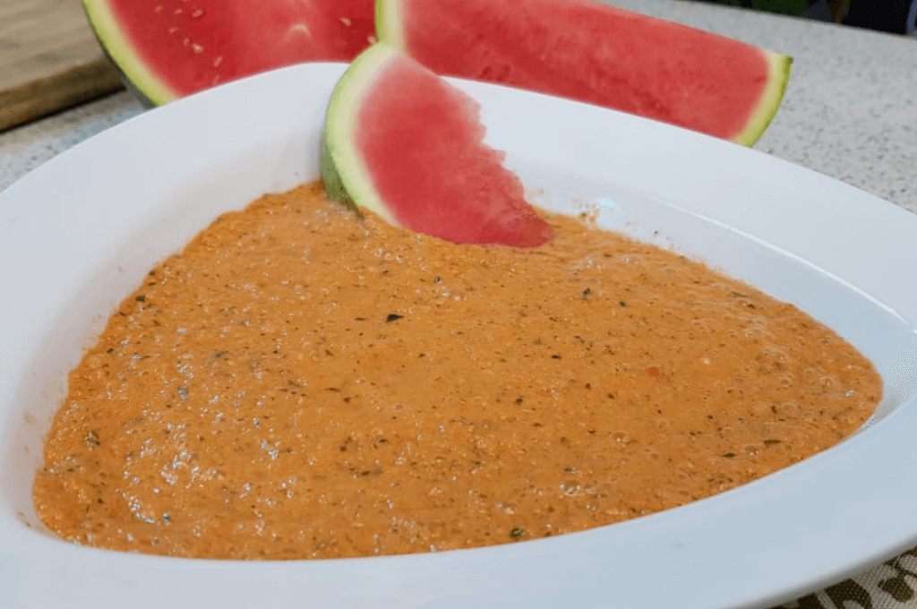 El gazpacho de sandía es un platillo distinto y que va perfecto en la temporada de primavera y verano. Esta es básicamente una sopa fría, que aunque no estamos acostumbrados a consumirlas es una opción ideal para mantenernos hidratados.