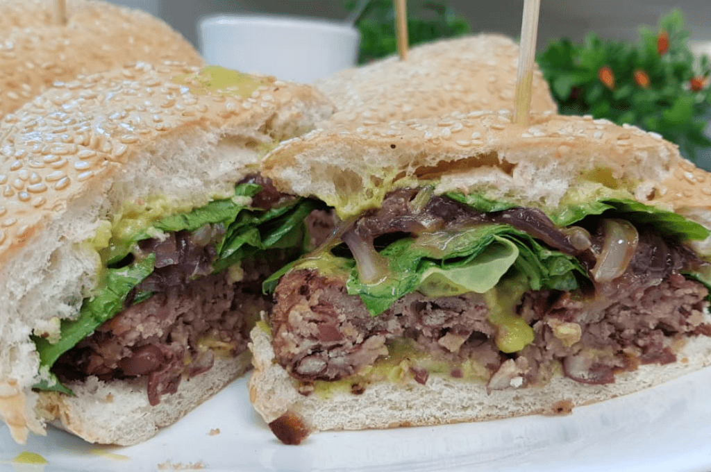 Hamburguesa de frijoles y guacamole, esta es una receta saludable y fácil de preparar, ideal para las personas vegetarianas ya que no contiene carne. Además, está llena de proteínas que aportan los frijoles. Esta receta no ocupa muchos ingredientes por lo que se prepara rápidamente para un almuerzo libre de grasa y con muchos nutrientes que aportan estos ingredientes.