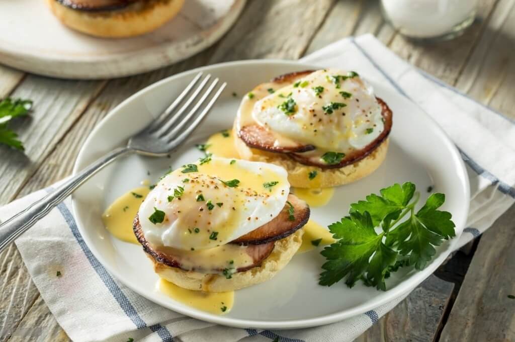 Los huevos benedictos puedes hacerlos estrellados o pochados, la clave será que dejes la yema suave para disfrutar del sabor de éste ingrediente tan rico en nutrientes.