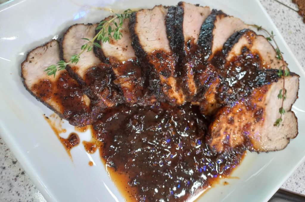 - Cortamos en rodajas el lomo y servimos con la salsa.