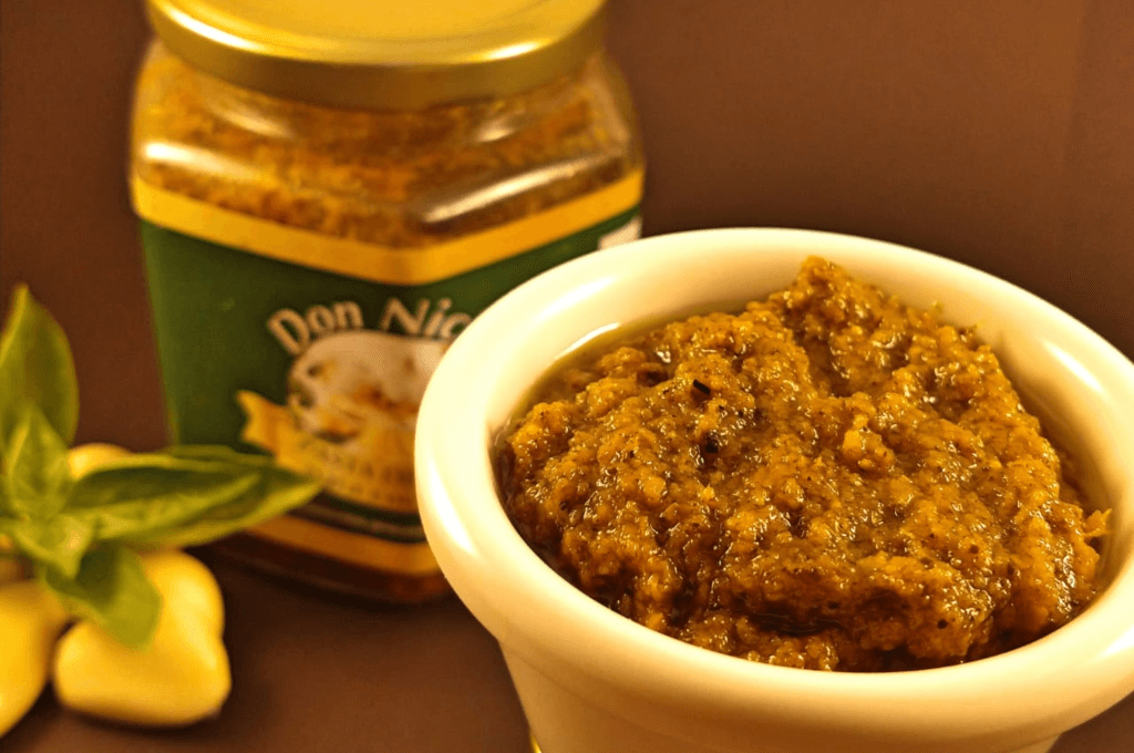 Uno de los ingredientes destacados en esta receta, aparte del ají, es la pasta de ajo exclusiva del chef José Mejía. Compuesta principalmente por ajo, además contiene hierbas aromáticas y aceite de oliva. Es perfecta para cualquier preparación salada, o para añadir al pan con ajo.