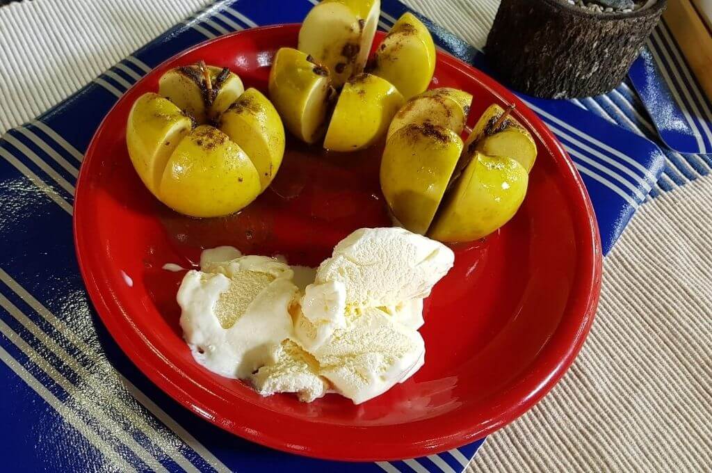 - Precalentar el grill a fuego medio y colocar las manzanas por 10 minutos y voltear, dejar 10 minutos más y degustar con helado de vainilla de preferencia encima de las manzanas.