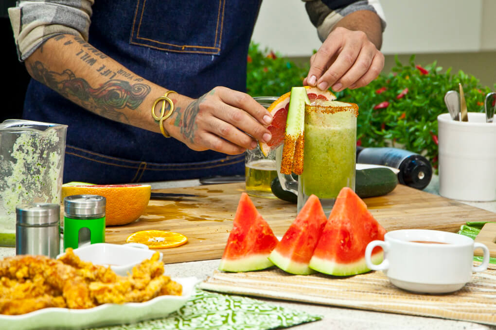 El chef Carlos Espinal prepara esta michelada de pepino con una fusión de sabores cítricos como el limón y la toronja; el resultado te enamorará. Sigue el paso a paso y no esperes más para refrescarte con un coctel de primera clase.