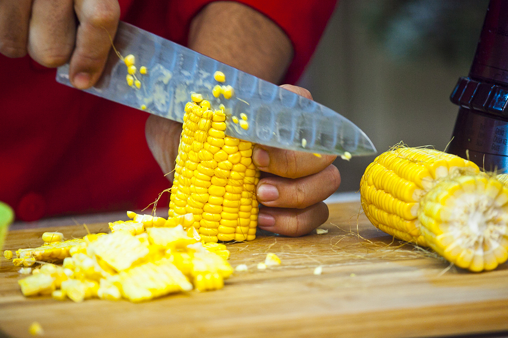- Desgranar los elotes y verter en la licuadora a velocidad media junto con el resto de ingredientes, se recomienda no triturar tanto los granos de maíz.
