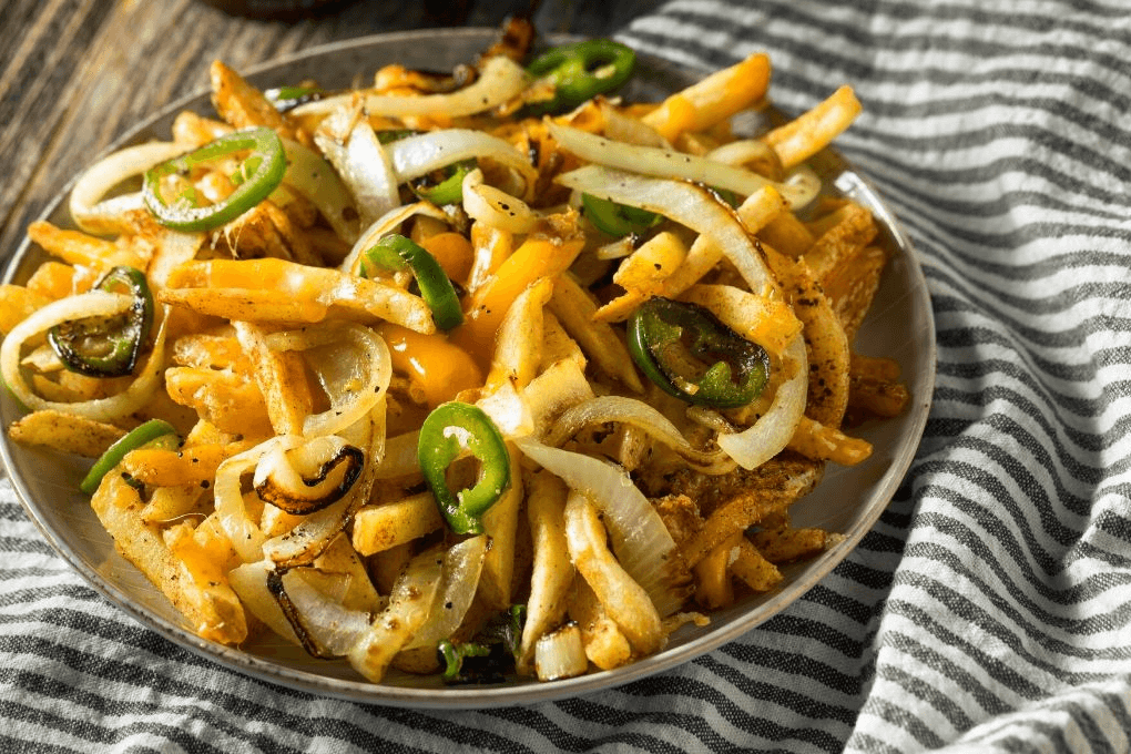 Para preparar estas papitas Philly Steak necesitarás queso cheddar, aunque si deseas puede utilizar cualquier otro queso de tu preferencia y que se pueda derretir fácilmente. Es importante que recuerdes que las papas deben estar cortadas a la francesa o tipo bastón para que las puedas disfrutar mejor.