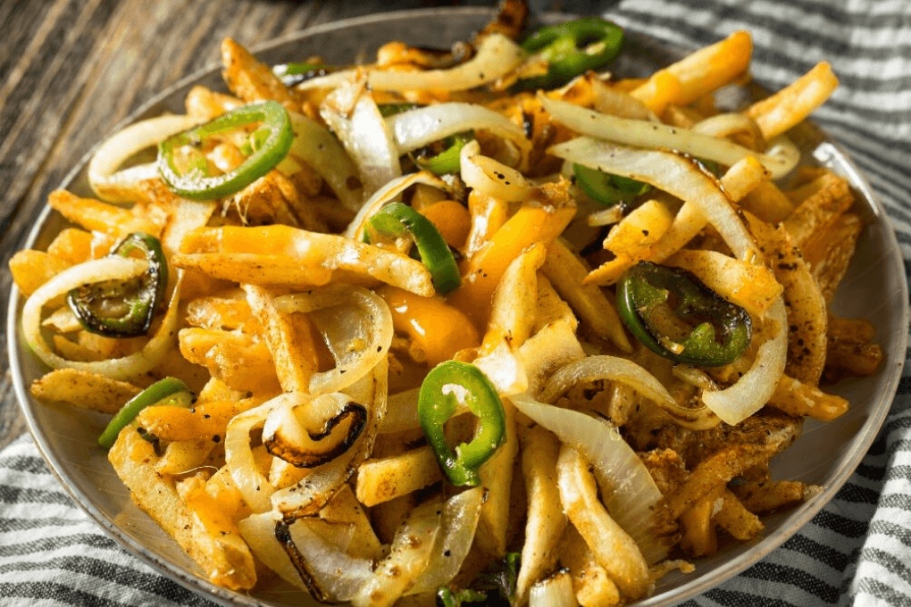 Las papitas Philly Steak son una delicia que puedes preparar para cuando tienes antojo de algo especial. Los que son amantes de las papas fritas no se pueden resistir a nuestra versión, en la que básicamente son unas papas cortadas en bastos, fritas y que se sirven con variedad de toppings.