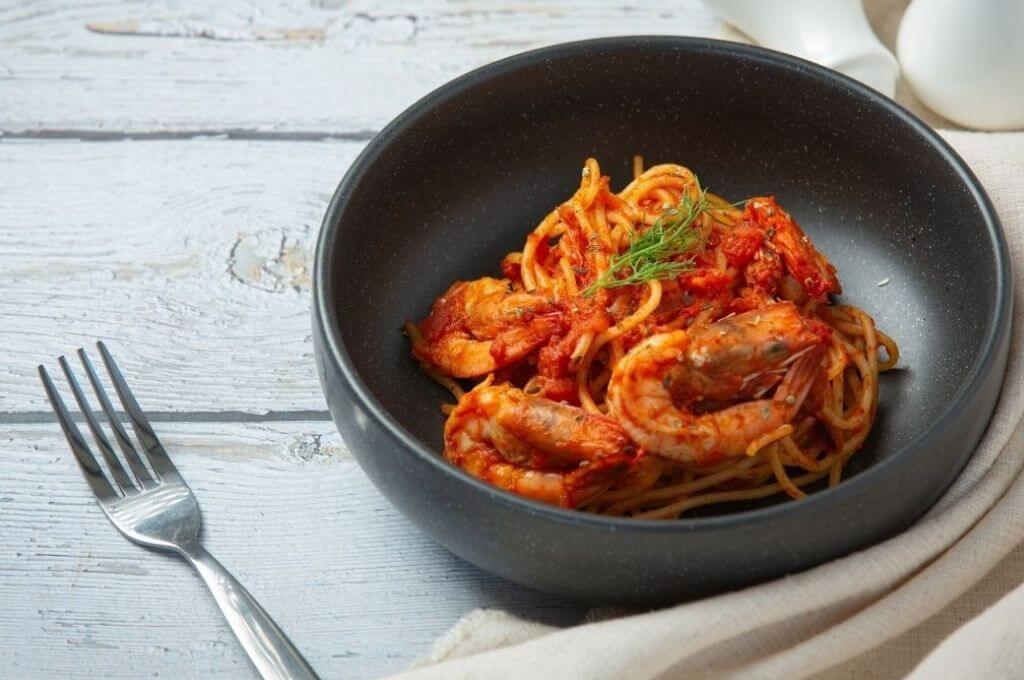 El sabor a mar de los mariscos y el remate de la cocción de la pasta con el Jugo de Vegetales con Almejas Marinero, hace que este plato tenga un sabor intenso. Eso sí, hay que tener a los comensales listos para sentarse a la mesa en cuanto saquemos el plato, para que puedan disfrutar de la pasta con camarones Marinero.