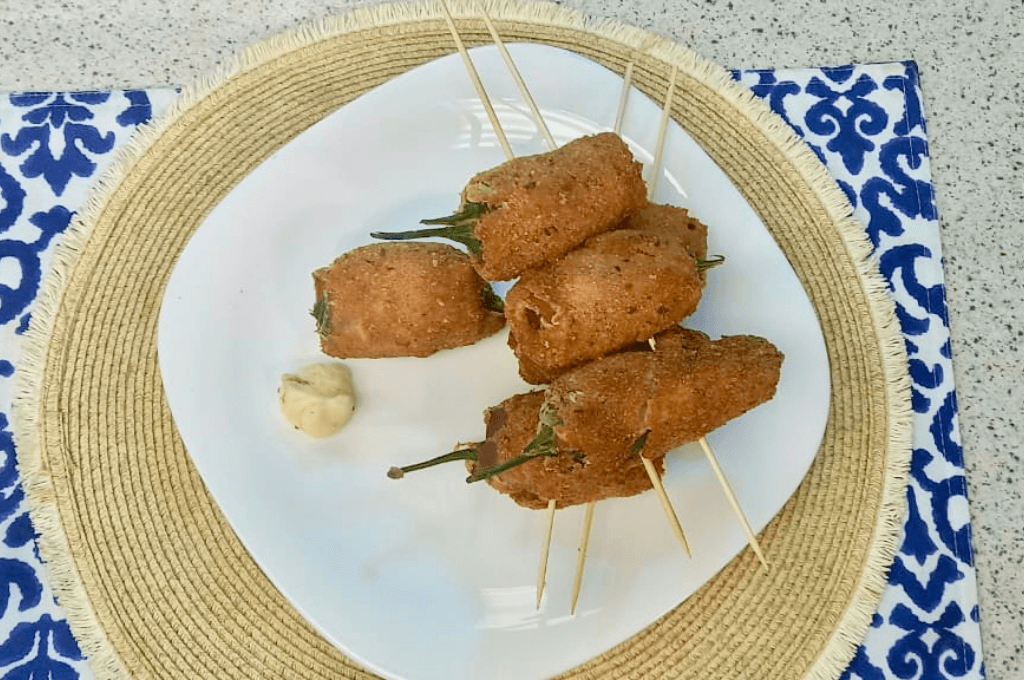 - Atravesar con palillos para pinchos 2 jalapeños por cada uno, servir con el aderezo o salsa de tu preferencia.