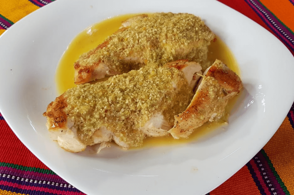 El pipián verde consiste en una pechuga de pollo con una salsa verde, puedes acompañar esta receta con arroz o vegetales salteados, como sea de tu preferencia.