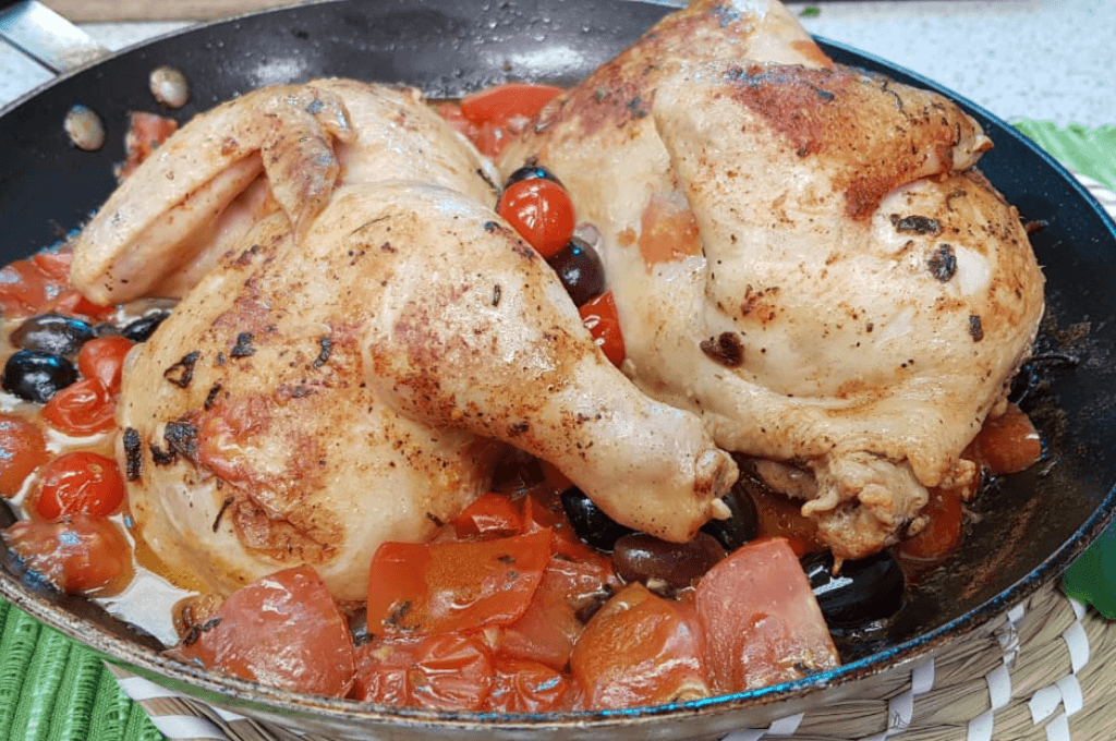 El pollo a la mediterránea es una forma diferente y fácil de hacer pollo entero.