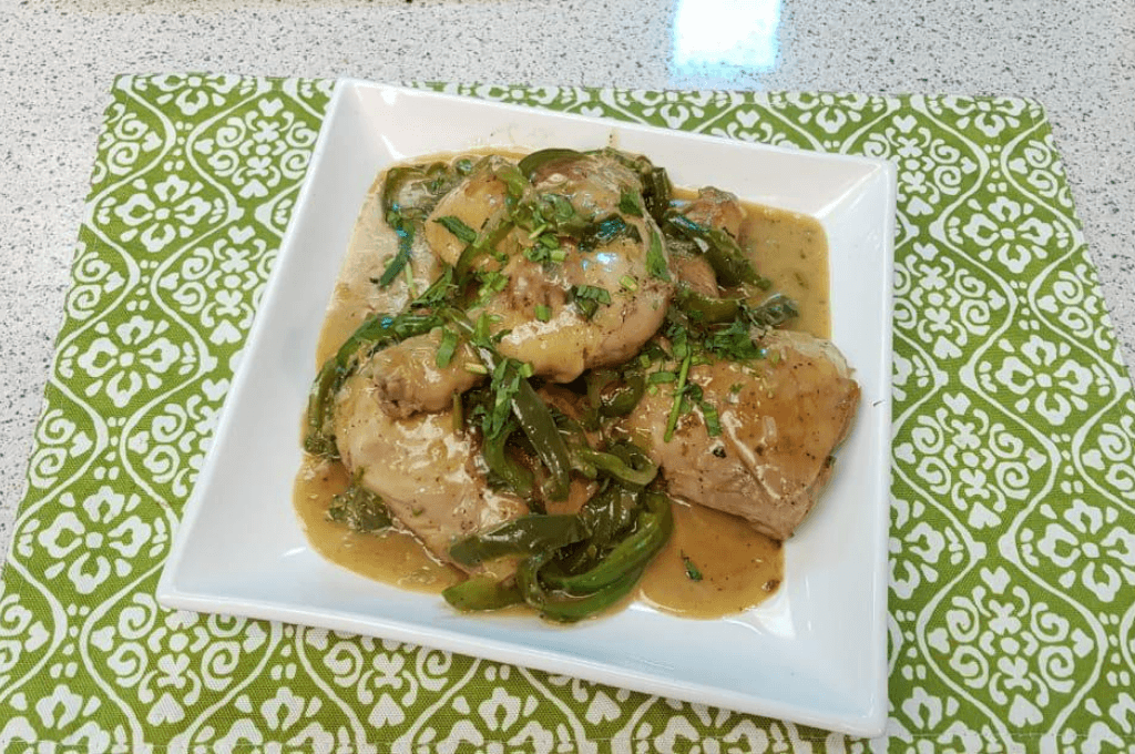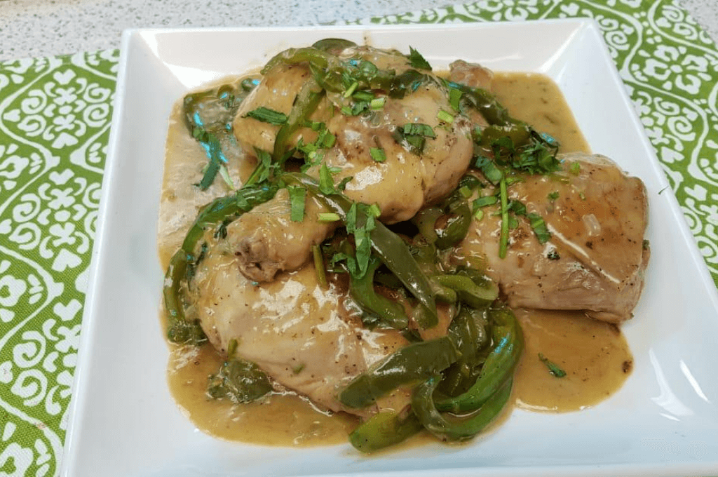 Otro de los sabores que resaltan en esta receta de pollo en coco es la combinación de vegetales como el chile dulce verde y la cebolla; pero aún más intenso se siente el gusto aromático del culantro ancho, que aporta un toque sinigual a esta preparación. El olor de esta hierba aromática es deliciosa y su sabor es bien característico, es uno de los ingredientes indispensables para añadir a esta receta.