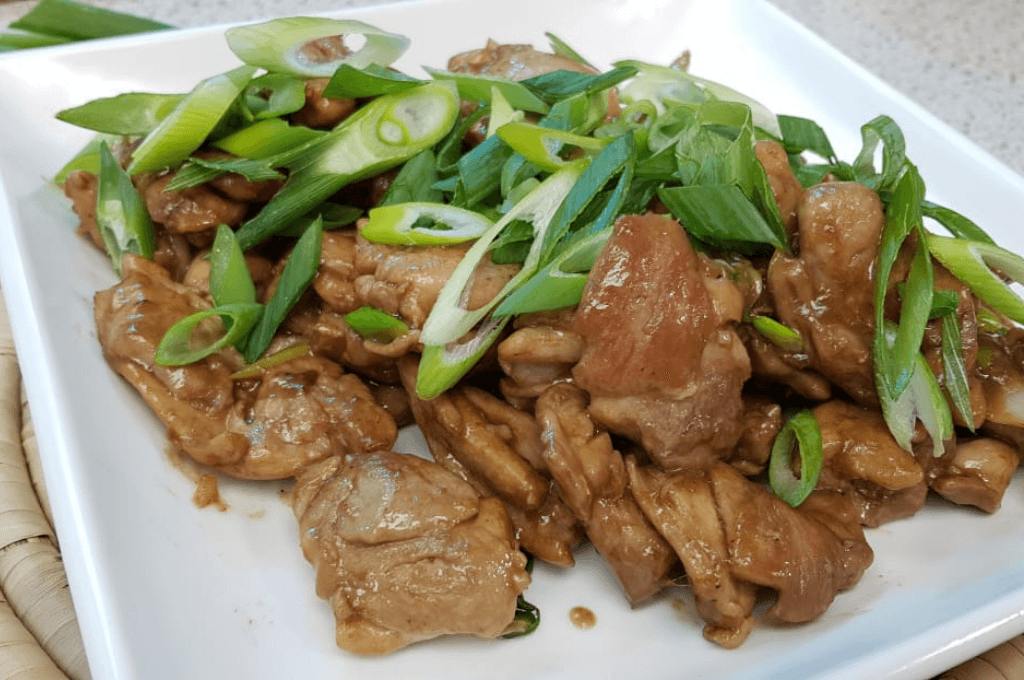 Para decorar el pollo teriyaki utilizamos cebollina picada.