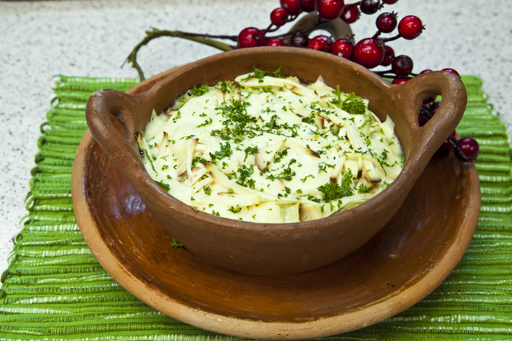 - Agregar el perejil y poner en una bandeja para hornear. Cubrir la superficie con los quesos y colocar en el horno a 400 ºF durante 10 minutos o hasta que los quesos se fundan y quede dorado.