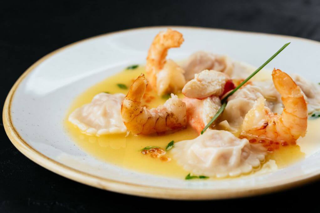 - Servir los ravioles con salsa fresca de tomate y los camarones con salsa de ajo.