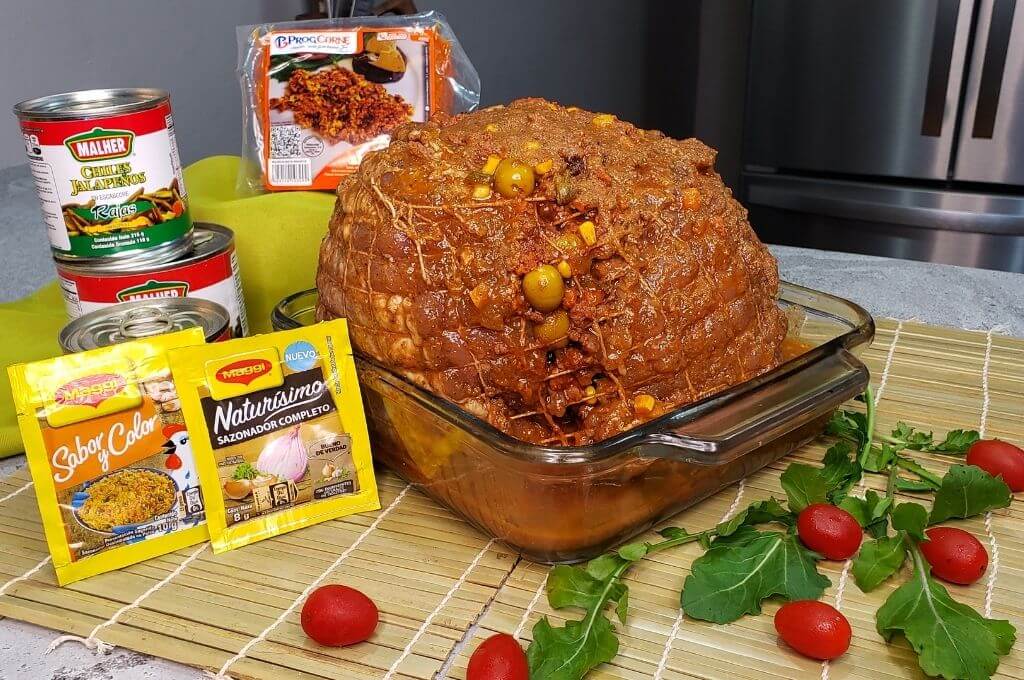 La Navidad es una de las fechas más esperadas por esos paladares exigentes, con Maggi y Progcarne te traemos deliciosas opciones para rellenar el cerdo estas fiestas, por lo que te compartimos también la receta de la pierna de cerdo en malla Progcarne que preparó el chef Espinal.