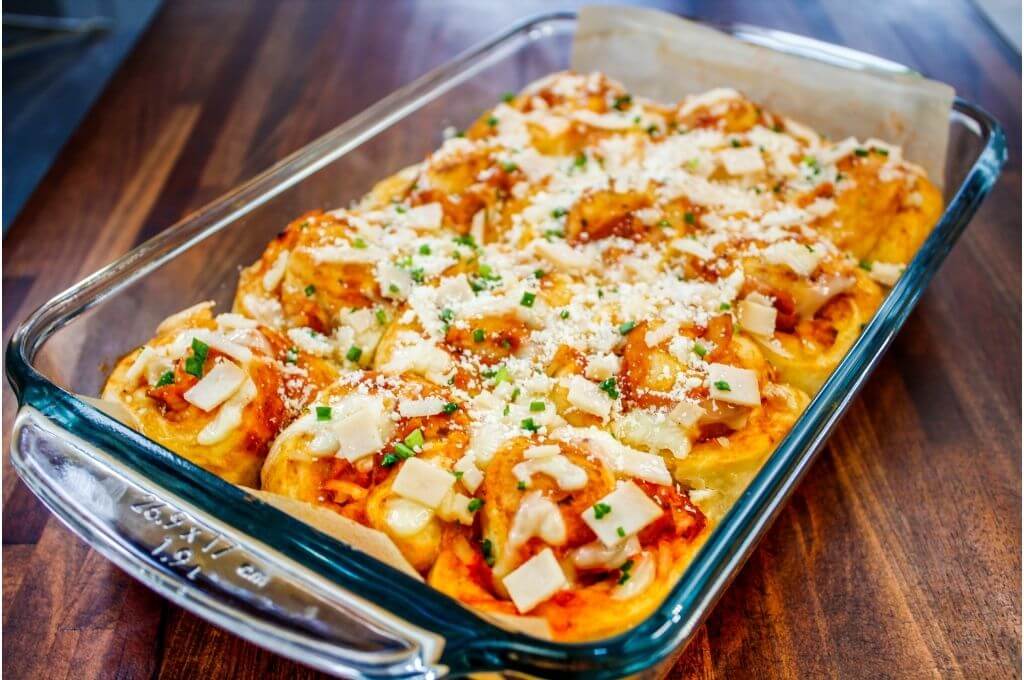 El secreto de esta receta es la combinación de su relleno. Es cómo si estuvieses armando tu pizza favorita, con jamón y el queso de tu elección, pero en un enrollado, horneado y suave. Ahora es importante también dejar que masa del rollo de pizza repose el tiempo necesario para que doble su tamaño. Otro tip importante es que la verifiques que la levadura no esté vencida y en buenas condiciones, generalmente no la debes guardar en lugares con humedad.