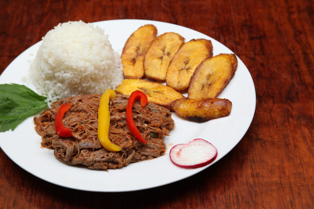 Existen muchas formas de servir la ropa vieja, pero en Cuba específicamente se sirve acompañada de arroz blanco y tajadas de plátano maduro. Lo delicioso de esta receta es esa fusión de sabores que se concentran en el guiso de la carne.