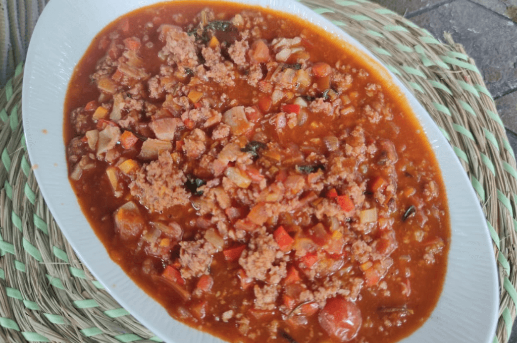Se caracteriza por llevar como ingredientes apio, zanahoria, cebolla y carne picada, la cual en este caso vamos a utilizar de res, pero se puede cambiar perfectamente por carne de cerdo, mixta o de pollo.