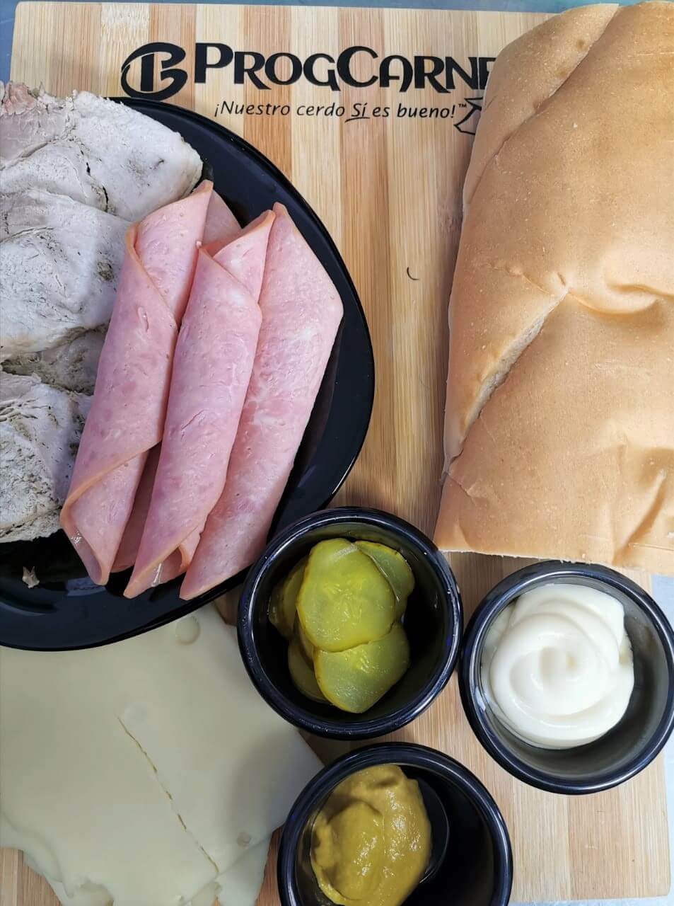 Ingredientes para el sándwich cubano.