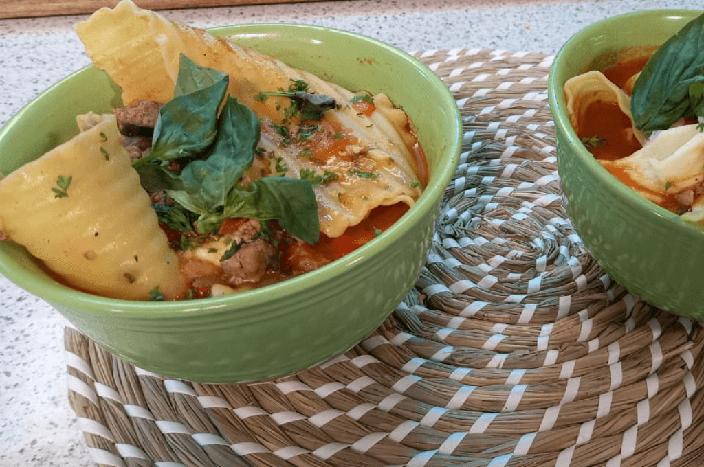 Sí, como lo leíste en el título…sopa de lasaña. Esta es una receta completamente innovadora y creada por el chef Carlos Espinal, quien ha decidido dar un giro revolucionario a la cocina con esta preparación ¡Esta sopa tiene todo el sabor de una lasaña! Es un plato completo, saciante y muy reconfortante en los días que se te antoja algo caliente. Por si fuera poco, es una preparación bastante rápida, en comparación con todo el trabajo que lleva esta delicia de la gastronomía italiana. Eso sí, no por lo fácil y práctico quiere decir que carece de sabor.
