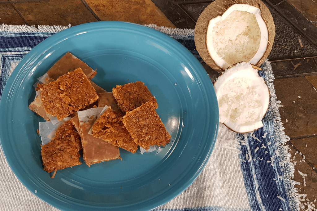 Este delicioso bocadillo procedente de la costa norte hondureña, es elaborado con coco y azúcar de panela. Para esta receta debes estar muy atento, la mínima distracción y no quedará en su punto.