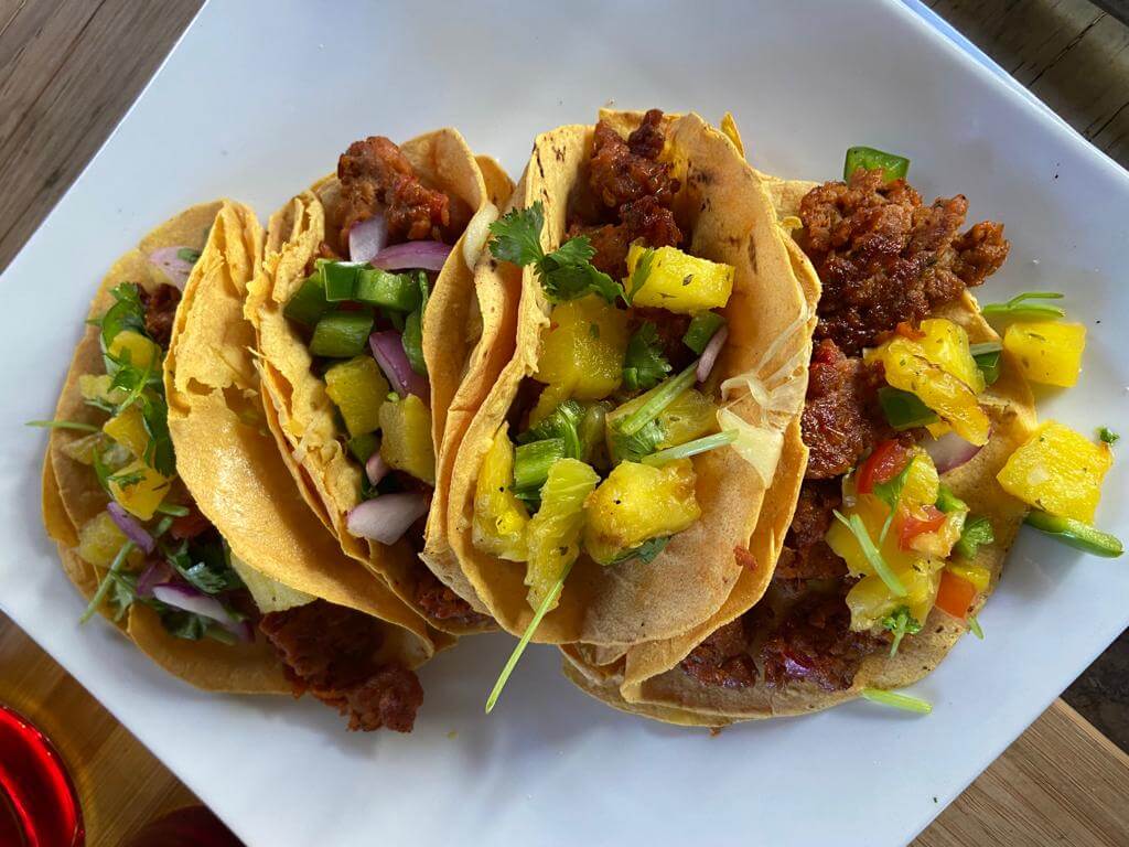 Los tacos picantes con chismol de piña grillada solo toman alrededor de 20 minutos en preparar. Si deseas darle un giro a esta receta puedes preparar primero unas tortillas con quesillo al grill, seguido doblar un poco las tortillas y acompañarlas con carne para tacos picante de Embutidos Delicia, y como toque final una refrescante ensalada verde.