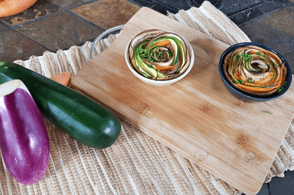Ésta tarta de vegetales en espirales fue inventada en Francia por Sonia Ezgulian y ya ha dado la vuelta al mundo navegando por la red al igual que lo hizo la famosa tarta de manzana de rosas de Alain Passard. Esta tarta de verduras es un poco más larga de hacer, pero el resultado es espectacular.
