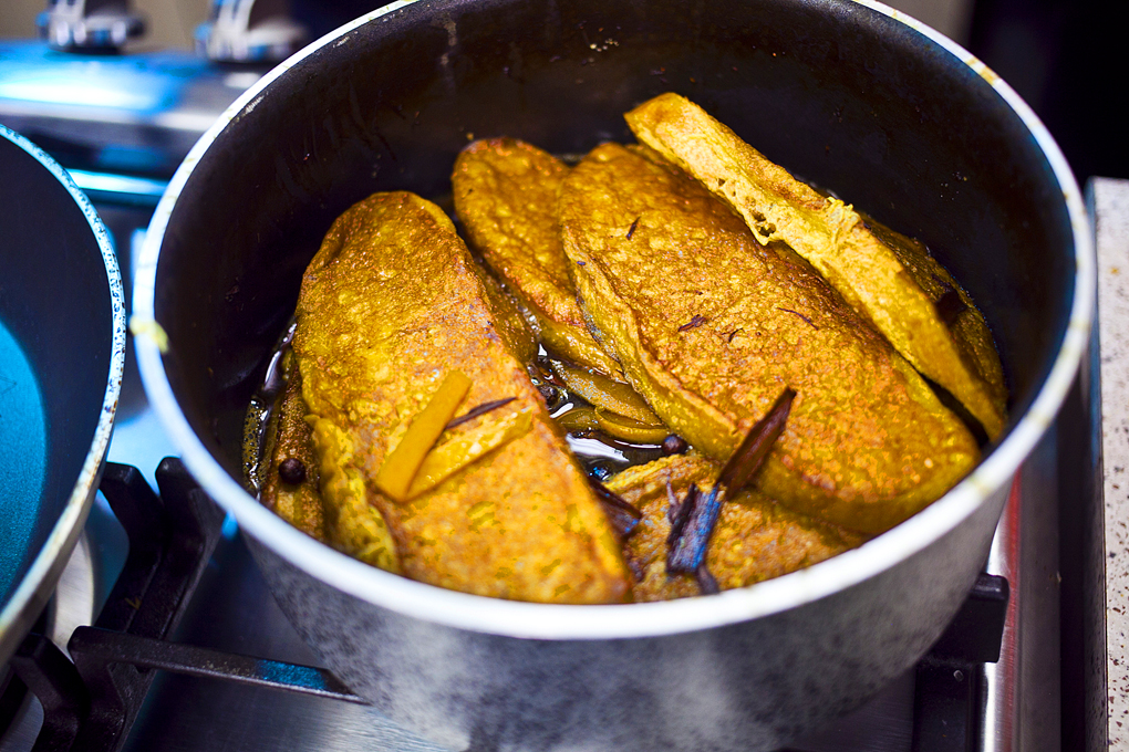 Tostar por 2 minutos las especias dulces en la cacerola, no agregar ni grasa, ni agua… esto permite que los olores se suelten y el sabor se intensifique.