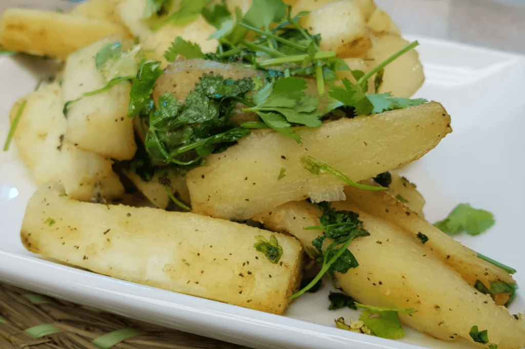 Elaboración de esta receta de yuca al cilantro