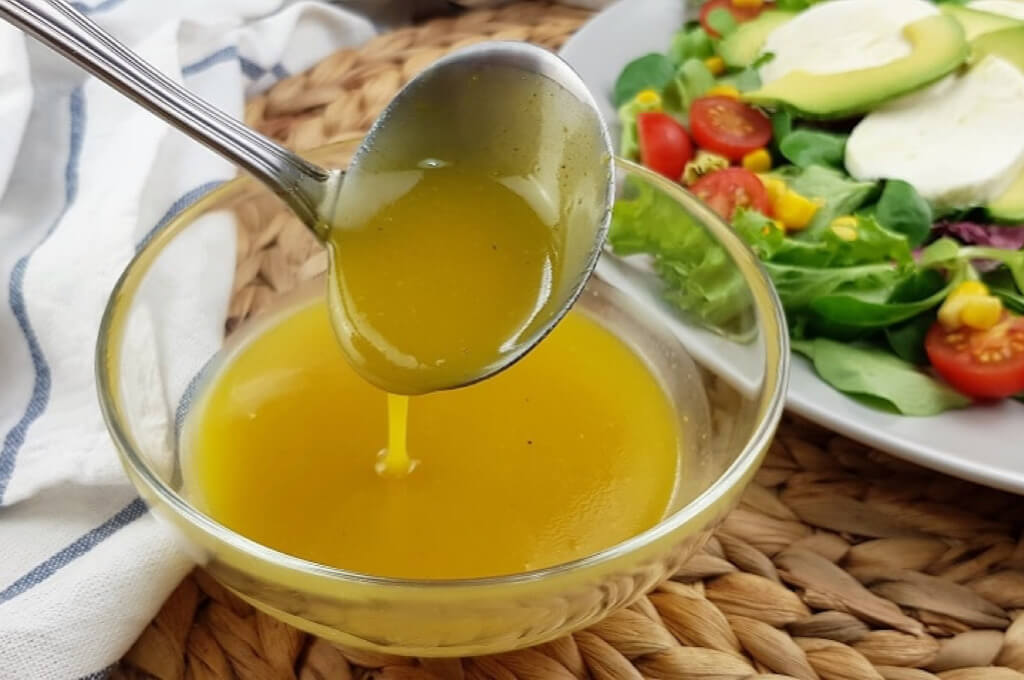 En 1 tazón mezclar 3 cucharadas de aceite de oliva con ½ cucharadita de vinagre balsámico, ½ cucharadita de mostaza, 1 cucharada de cilantro fino finamente picado y 1 cucharada de miel de abeja. Dejar reposar y usar con una ensalada tipo mediterránea con chile morrón y almendras.
