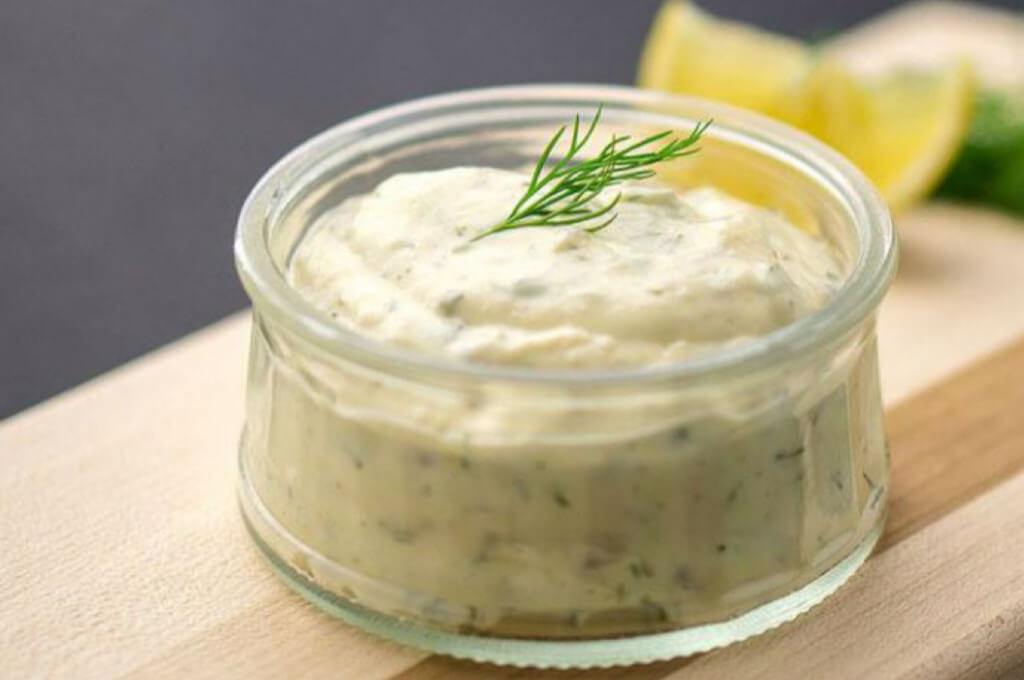 Licuar 1 taza de mayonesa, ½ taza de crema ácida, ½ cucharadita de cebollín seco, ½ cucharadita de perejil, ½ cucharadita de eneldo seco, 1 diente de ajo, 2 cucharadas de cebolla picada, sal y pimienta al gusto. Licuar hasta que todo se integre bien, dejar reposar 20 minutos antes de usarla.