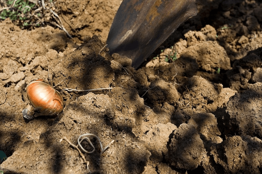 Cubre las cebollas con tierra, asegurándote de que tengan al menos unos 20 cm de profundidad. Evita el riego excesivo, ya que cambios bruscos en la humedad pueden causar el agrietamiento de las cebollas.