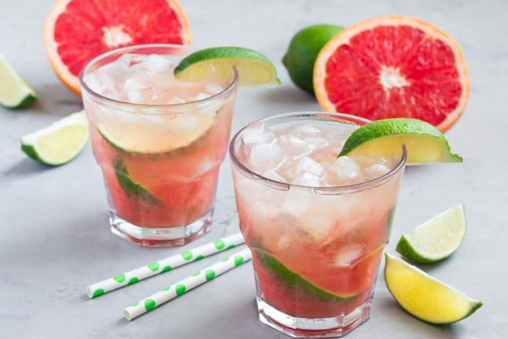 Dejar enfriando 1 botella de vino blanco y ½ litro de soda con sabor a toronja o su jugo durante al menos 3 horas. En una jarra colocar el hielo con fresas en rodajas al gusto, agregar el vino y el refresco de toronja, mezclar y servir en vasos individuales. Decorar con rodajas de limón.