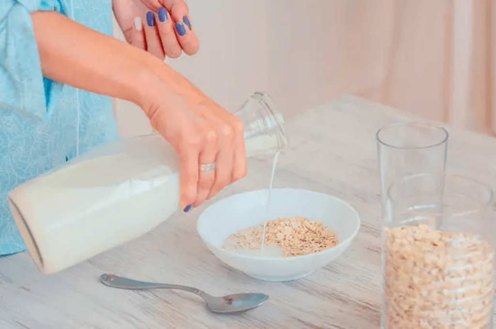 Una noche anterior coloca las hojuelas de avena en un recipiente de vidrio ya sea en un bowl pequeño o un vaso. Agrega agua o leche, esto según tu preferencia; para ablandar la textura de la avena y conseguir ciertas características deseables como un sabor y aroma más atractivo.