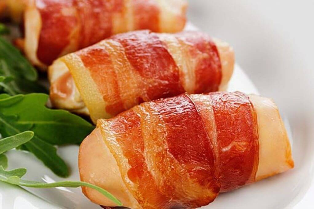 Esta receta de pollo envuelto en tocino con miel y mostaza es una combinación deliciosa y jugosa de sabores dulces y salados. Para prepararla, se necesitan pechugas de pollo, tocino, miel, mostaza de Dijon, sal y pimienta.