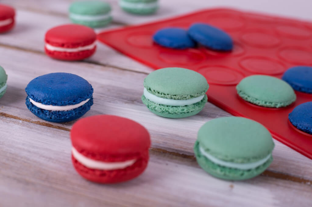 Este tipo de molde es el mejor para garantizar y mantener la forma de los macarons, pues tiene marcados los círculos que sirven para que los macarons no se salgan de su forma.